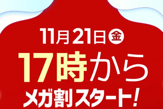 2025年第3回のメガ割開催は、2025年11月21日(金)17:00~12月3日(水)23:59。