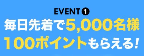 毎朝10時、イベントページの「応募する」から応募すると先着で5,000名に100ポイントがもらえます。
