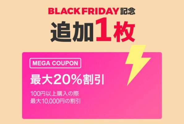 BLACKFRIDAY記念にメガ割クーポンが1枚追加されました!忘れずにダウンロードしておきましょう。