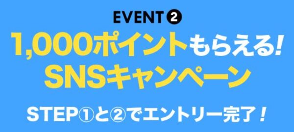 SNSアカウントをフォロー+いいね&RT(コメント)で1,000ポイントがもらえる