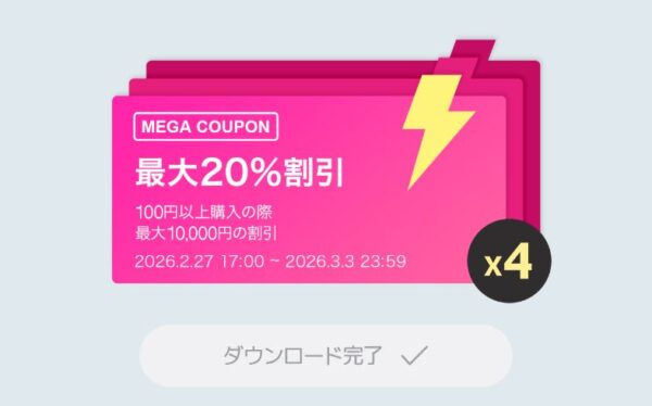 メガ割クーポンは、セール期間中3回に分けて4枚ずつ配布されます。